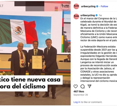 Celebramos con gran entusiasmo el reconocimiento de la Unión Mexicana de Ciclismo. Esta decisión abre una ventana de oportunidades inédita para los equipos del país. Estamos listos para ser protagonistas de esta nueva etapa de crecimiento y elevación del nivel deportivo. Nos preparamos con la convicción de que el futuro del ciclismo en México es prometedor y vibrante.